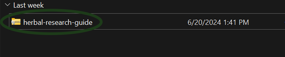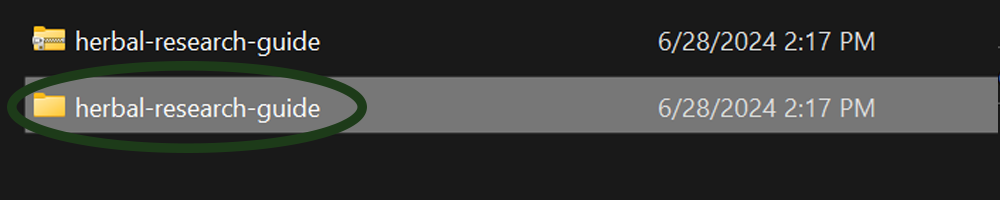 Important Note: If you used windows to unzip the folder, you will have a second “herbal-research-guide” folder to open on this step